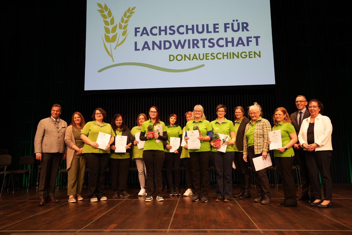Im Rahmen der 100-Jahrfeier der Fachschule für Landwirtschaft Donaueschingen wurden zwölf Absolventinnen der Ausbildung zur Fachkraft für Hauswirtschaft feierlich ausgezeichnet. Die Urkunden überreichte Landrat Sven Hinterseh gemeinsam mit dem baden-württembergischen Minister für Ernährung, Ländlichen Raum und Verbraucherschutz, Peter Hauk. Die festliche Übergabe fand im Beisein zahlreicher Gäste aus Politik, Bildung und Gesellschaft statt und unterstrich die große Bedeutung der hauswirtschaftlichen Ausbildung im Ländlichen Raum.