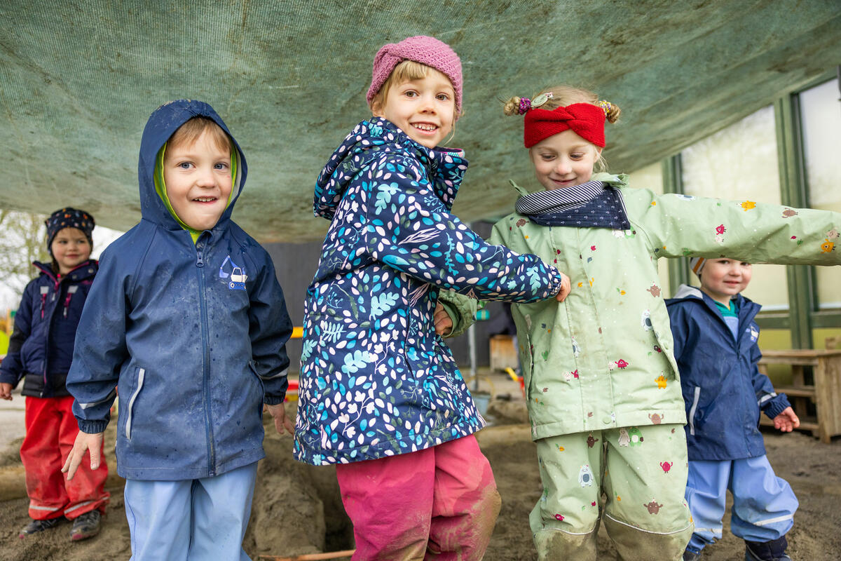 Die Betriebskindertagesstätte ist in einem Gebäude mit dem Schulkindergarten der Carl-Orff-Schule untergebracht und nutzt einige Räume gemeinsam. Hieraus ist eine Kooperation gewachsen, die ein wichtiger Bestandteil des pädagogischen Alltags geworden ist.
