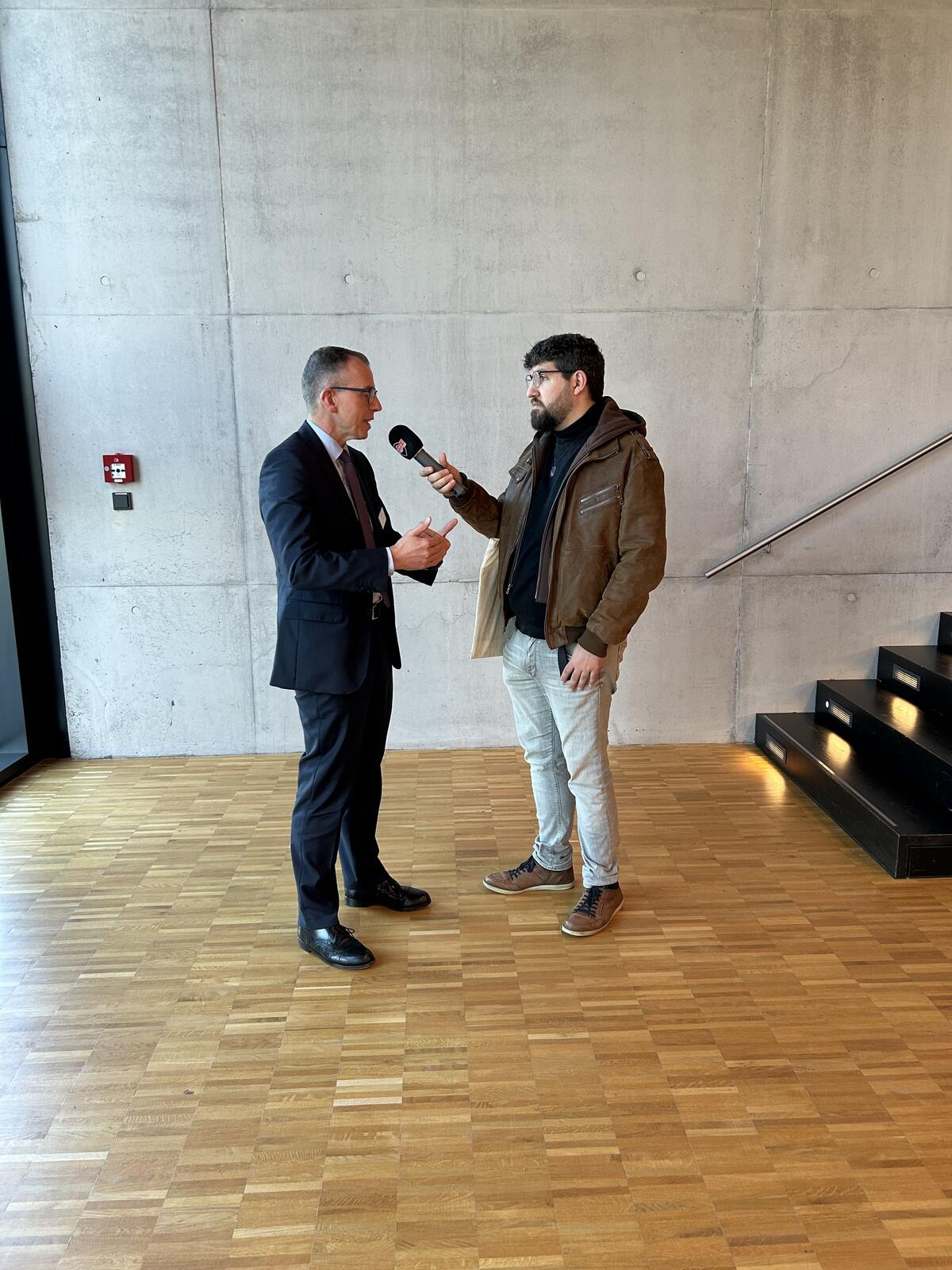 Landrat Sven Hinterseh im Interview zum Klinikstandort Donaueschingen mit Thomas Krebs von antenne 1 Neckarburg Rock & Pop – Regionalnachrichten: