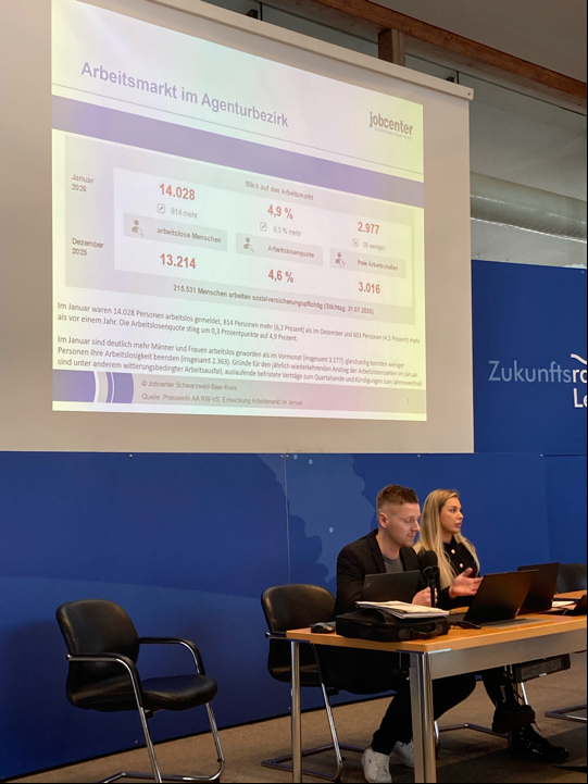 Das Job-Center Schwarzwald-Baar-Kreis informierte über Zahlen, Daten und Fakten zu Beratungen, Coachings, Maßnahmen, Vermittlungsvorschlägen, Arbeitsintegration und weitere Unterstützungsmöglichkeiten.